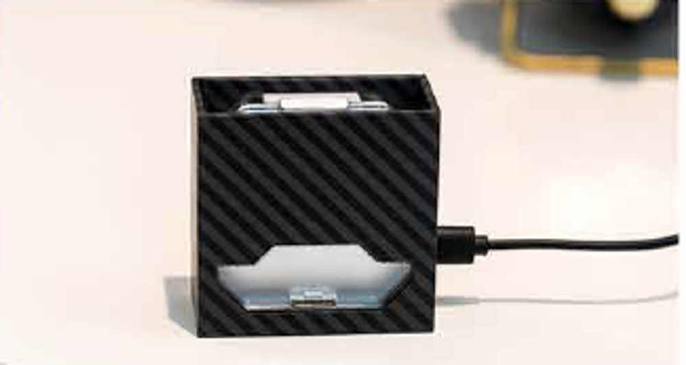 GHOSTBUDS packaging transforms into a: CHARGING STAND